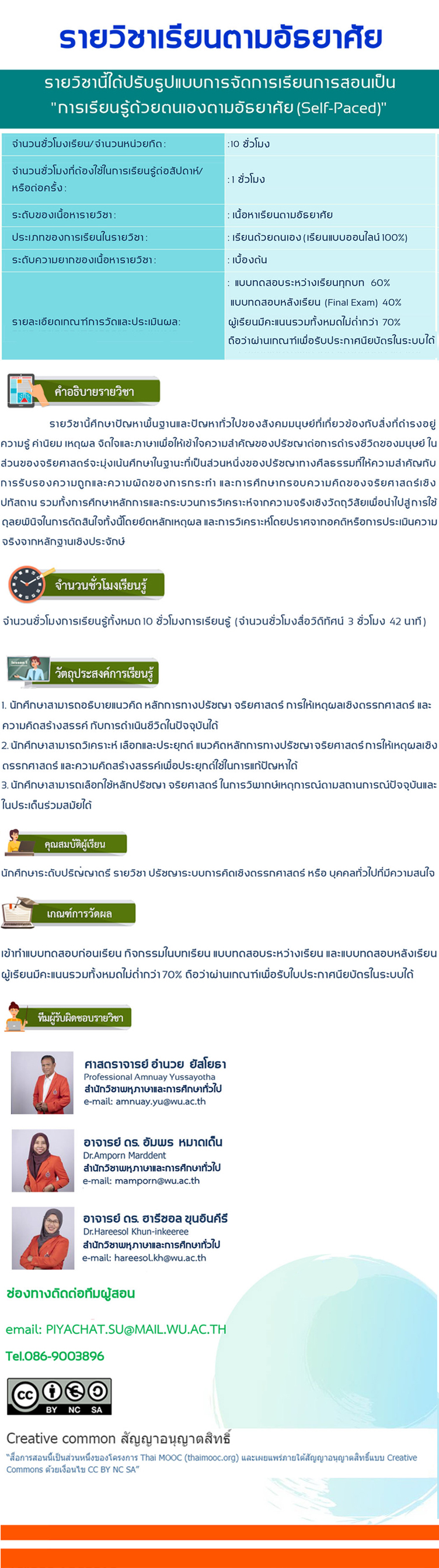 ปรัชญา จริยศาสตร์ และวิธีคิดแบบวิพากษ์ (Philosophy, Ethical Reasoning and Critical Thinking)